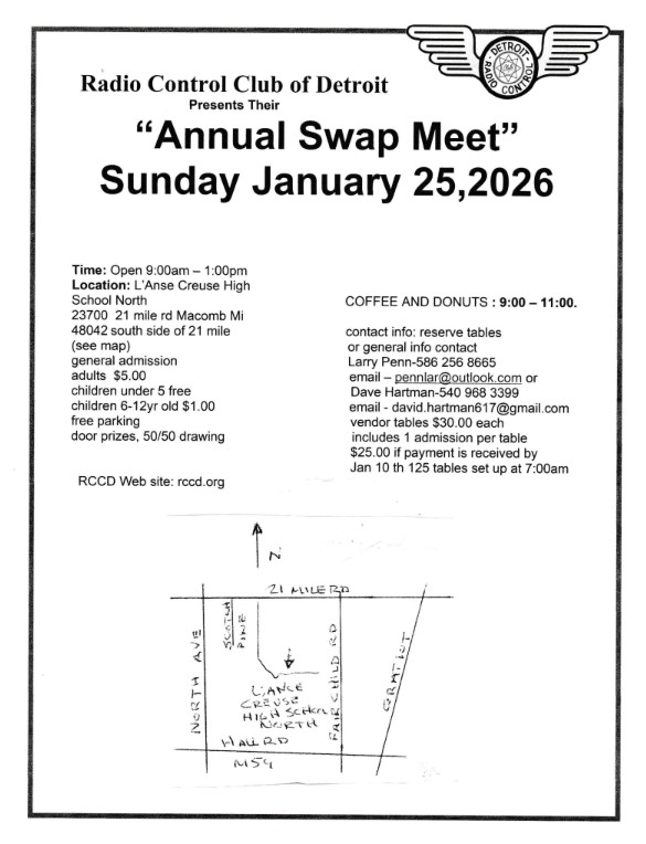 Annual Swap Meet. We are returning to L’Anse Creuse High School for a second year. We have prepared room for 125 tables!